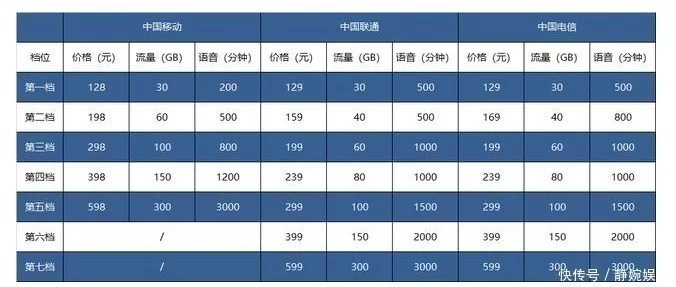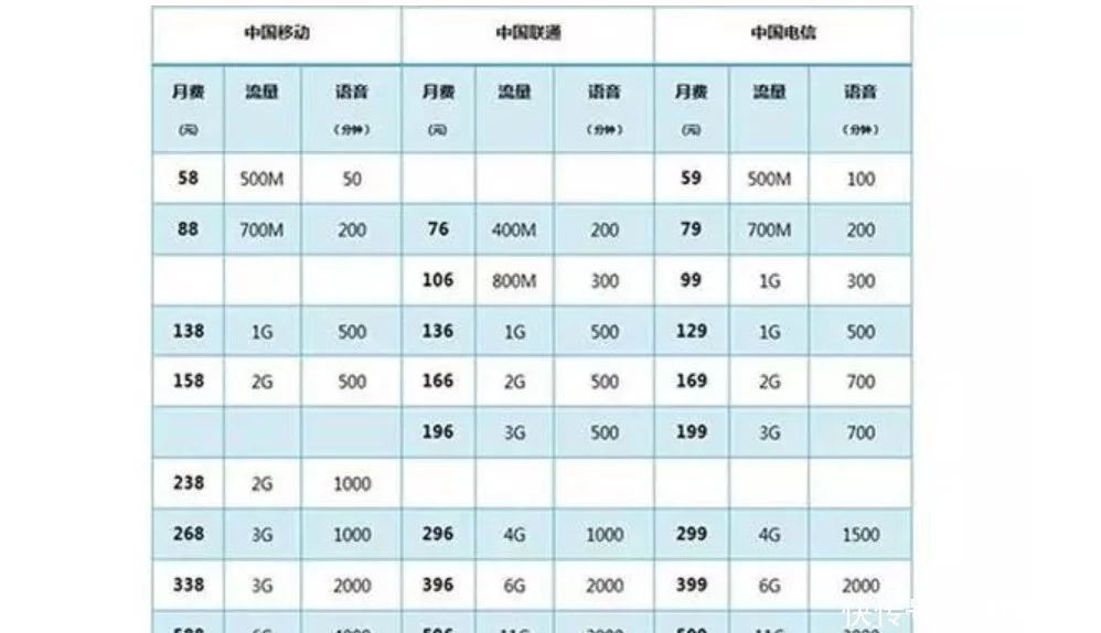好吧,那么一起来看看三大运营商之间的资费对比吧!